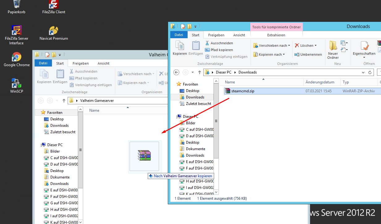 WindowsServer.zip verschieben WindowsServer.zip entpacken