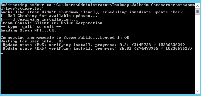 Steam>force_install_dir "C:\Users\Administrator\Desktop\Valheim Gameserver\Valheim"